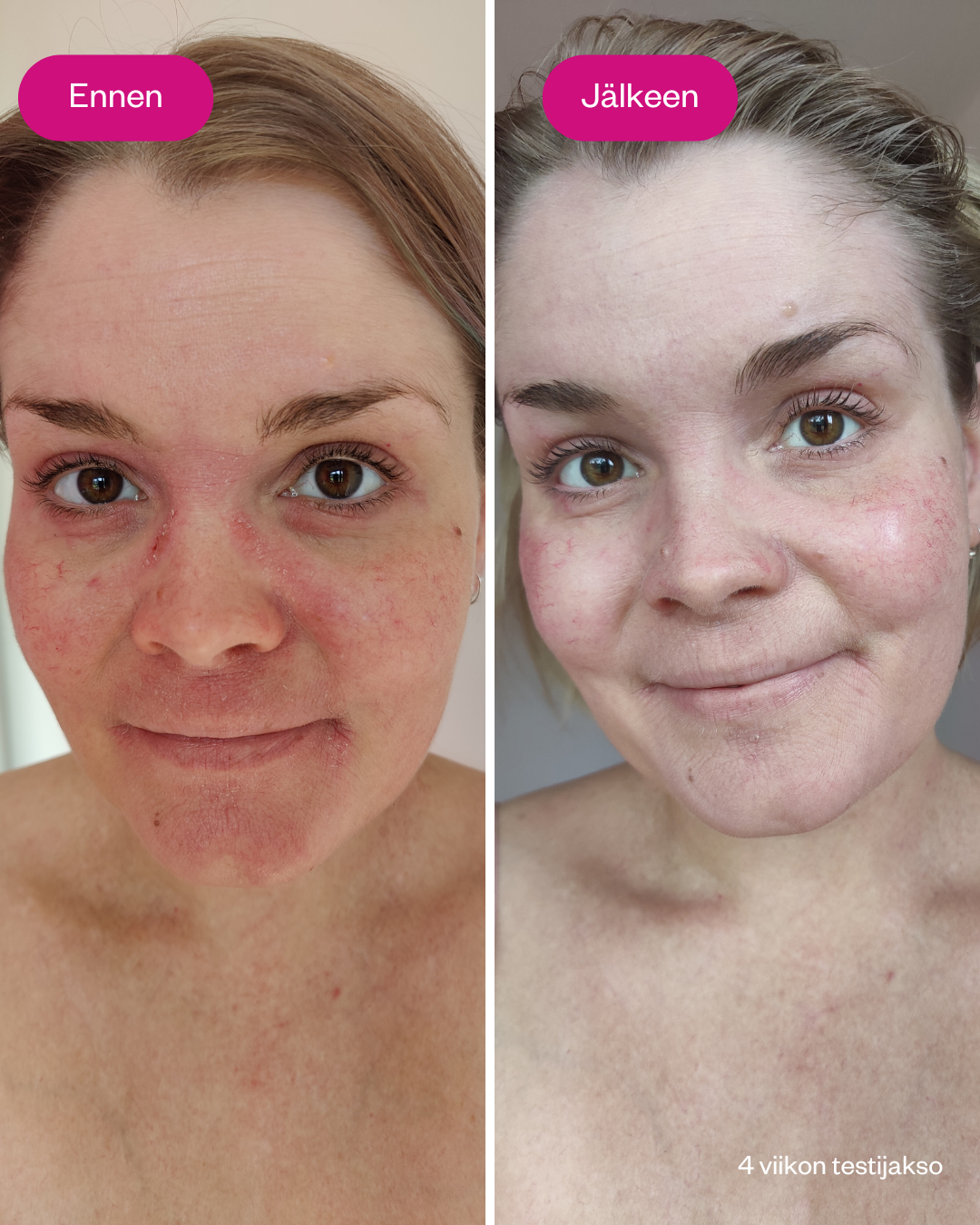“Olen 35-vuotias, ja mun iho on aina ollut todella kuiva ja iho myös punoittaa herkästi. Ennen Flow Cosmeticsin Ceramides & Probiotics-voidetta, en ollut löytänyt mitään, mikä olisi sopinut superherkälle iholleni. Jo viikossa punoitus lieventyi selvästi ja ihoni näyttää heleämmältä. Kiitos Flow, että teette tuotteita, jotka oikeasti toimivat!”