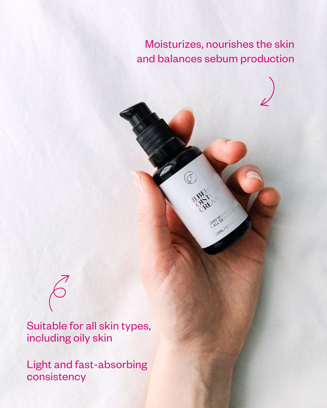 SPECIAL OUTLET BATCH! Bilberry Moisture Cream is a lightweight and velvety absorbing face cream. It provides a pleasant skin feel, making it excellent for use under makeup, also suitable for oily skin.
