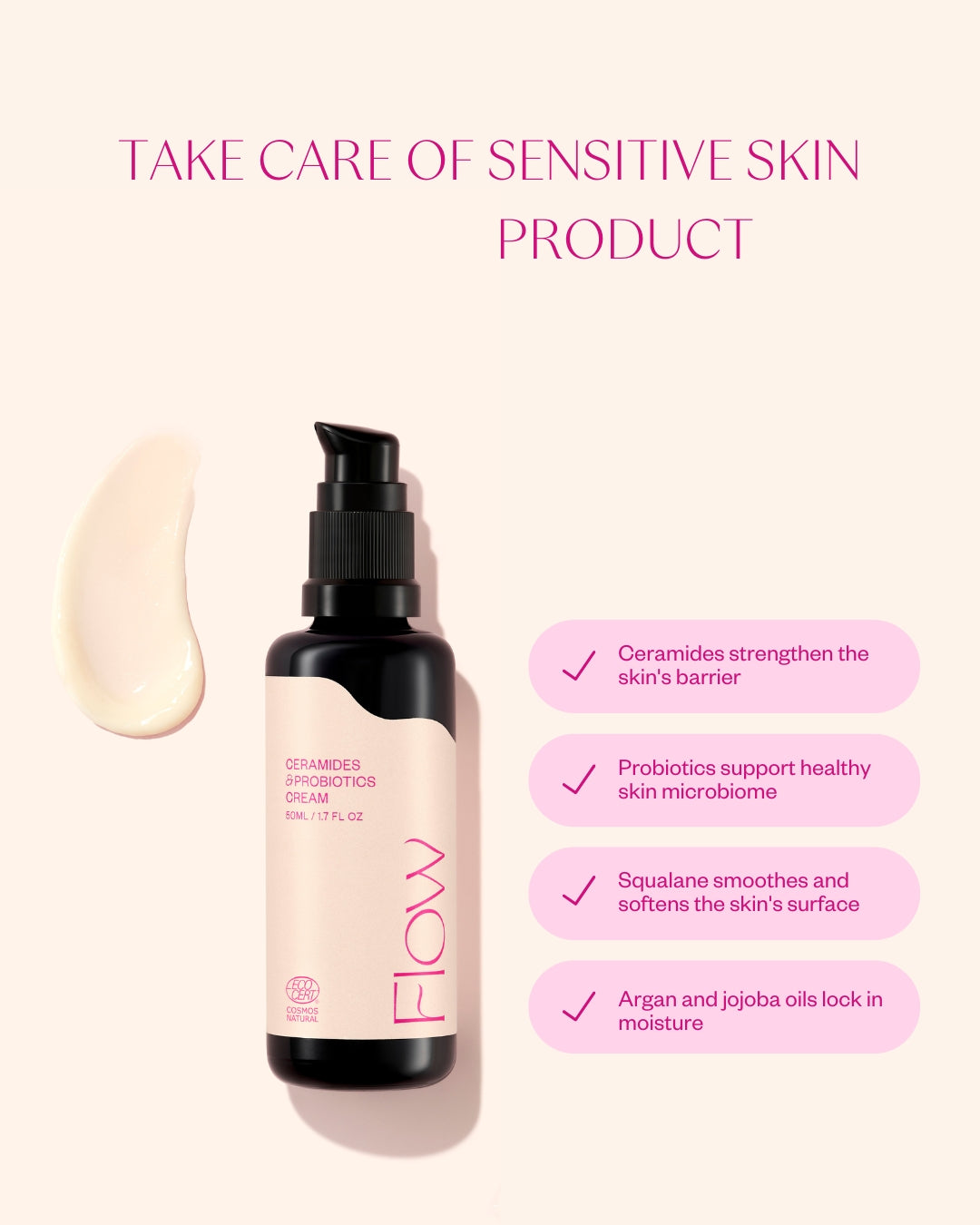 Proven high-quality natural cosmetics: Ceramides & Probiotics has received the prestigious Ecocert Cosmos Natural certificate.Key ingredients