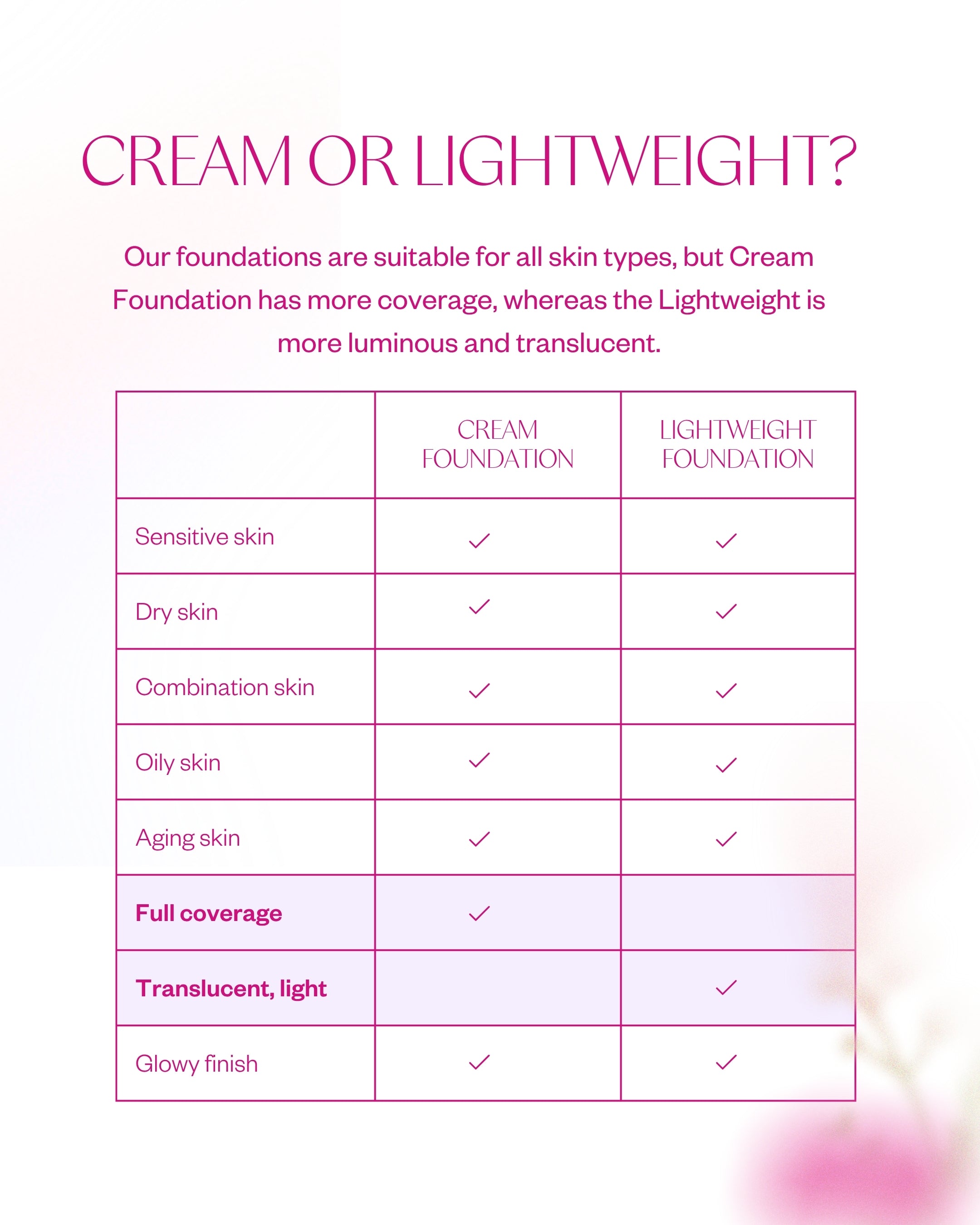 A soft-to-apply, completely matte mineral foundation with easily adjustable coverage from light coverage to full coverage.
