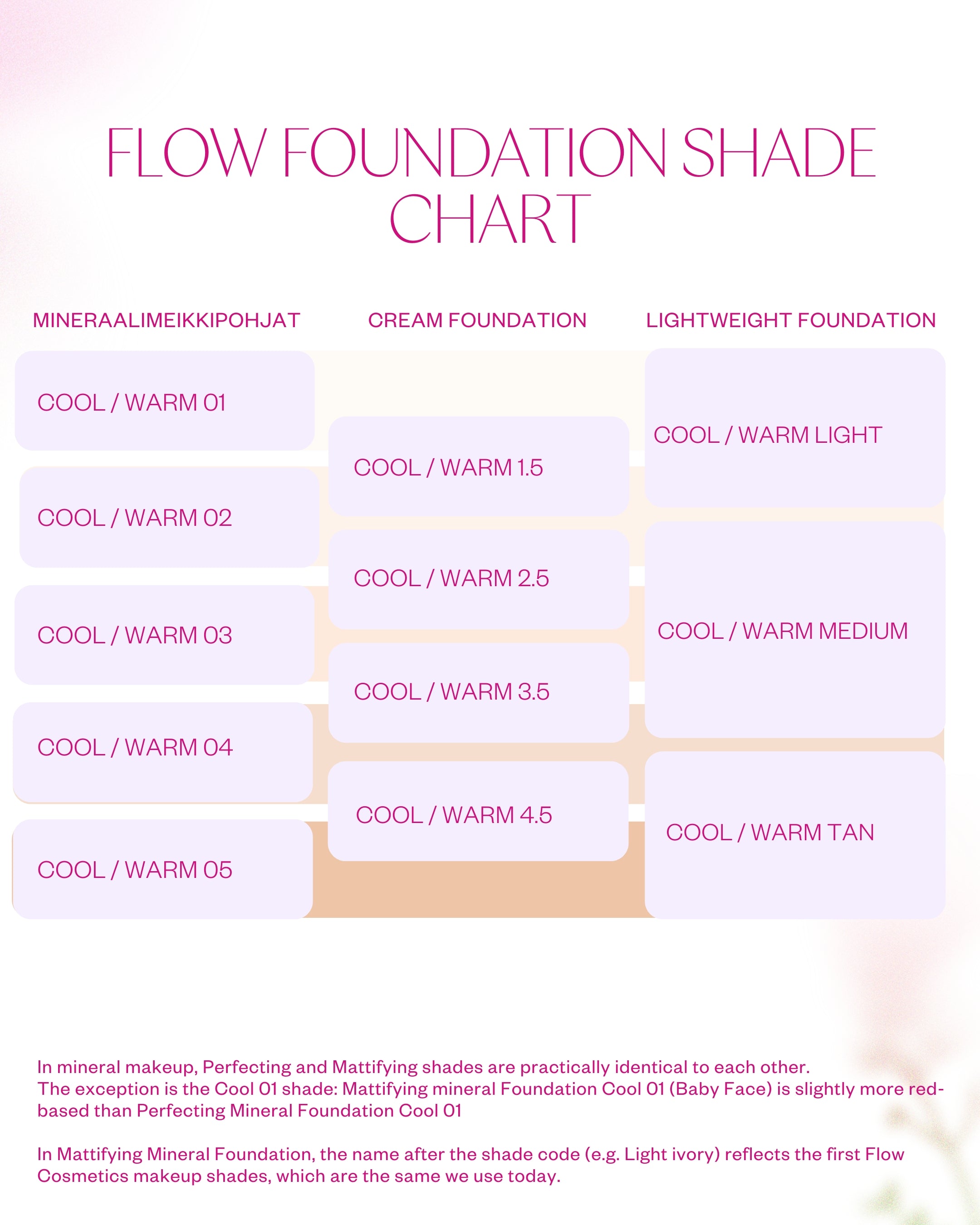 Velvety soft, even and radiant skin Does not clog pores Coverage can be adjusted by layering Fragrance-free and gentle formula Available in 8 different shades, warm and cool